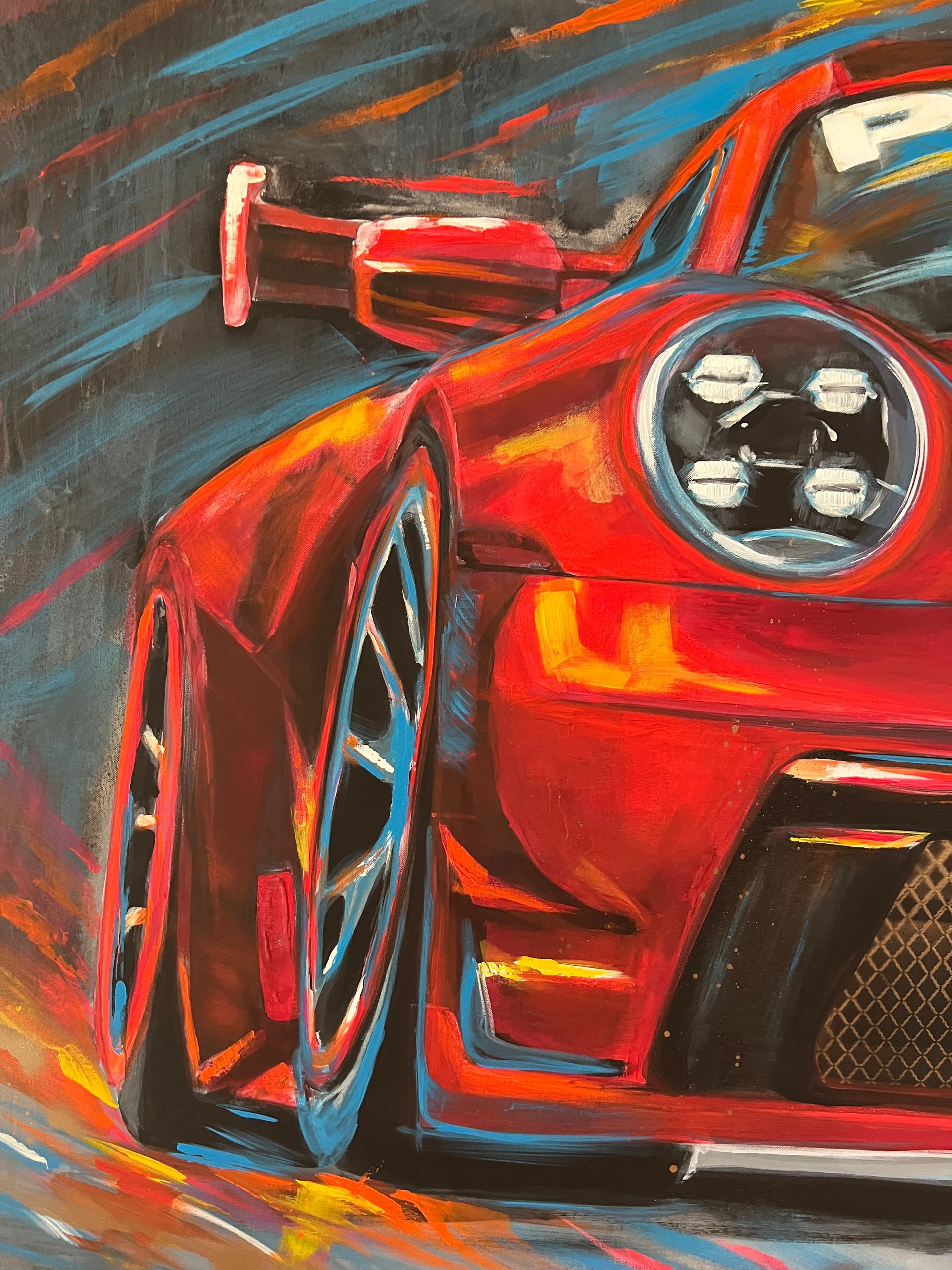 „Passion“ ist mehr als ein Bild – es ist ein Ausdruck innerer Bewegung, gebündelter Energie und brennender Hingabe. In leuchtenden Rottönen, dynamischen Linien und vibrierenden Akzenten entfaltet sich die Kraft des Moments. Der Sportwagen auf der Leinwand ist nicht nur ein technisches Objekt – er wird zur Metapher für Sehnsucht, Freiheit und Zielstrebigkeit.